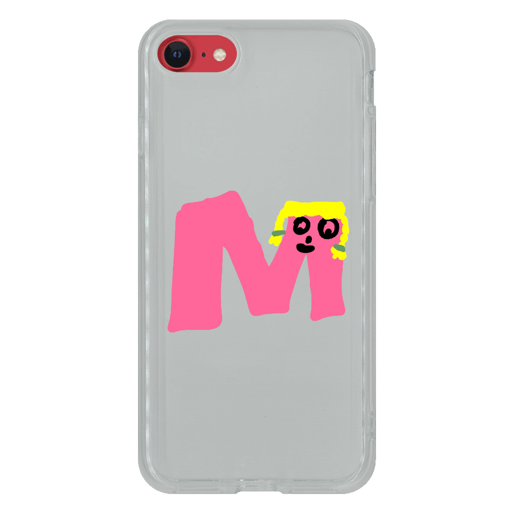 アルファベットのMをあしらったスマホケースです。Mはピンクで、三つ編みがチャームポイントです。