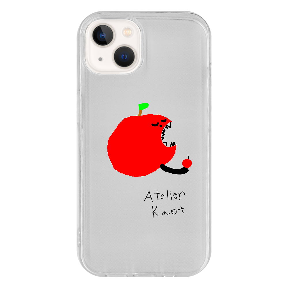りんごを食べるりんごをあしらったソフトタイプのスマホケースです。