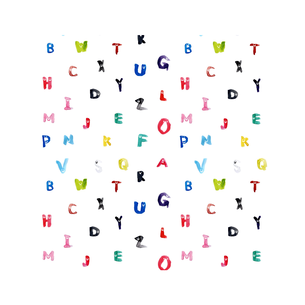 顔つきアルファベット ハンカチ
